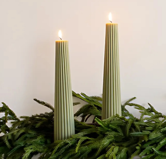 Natural Beeswax Fluted Pillar Candle in Sage