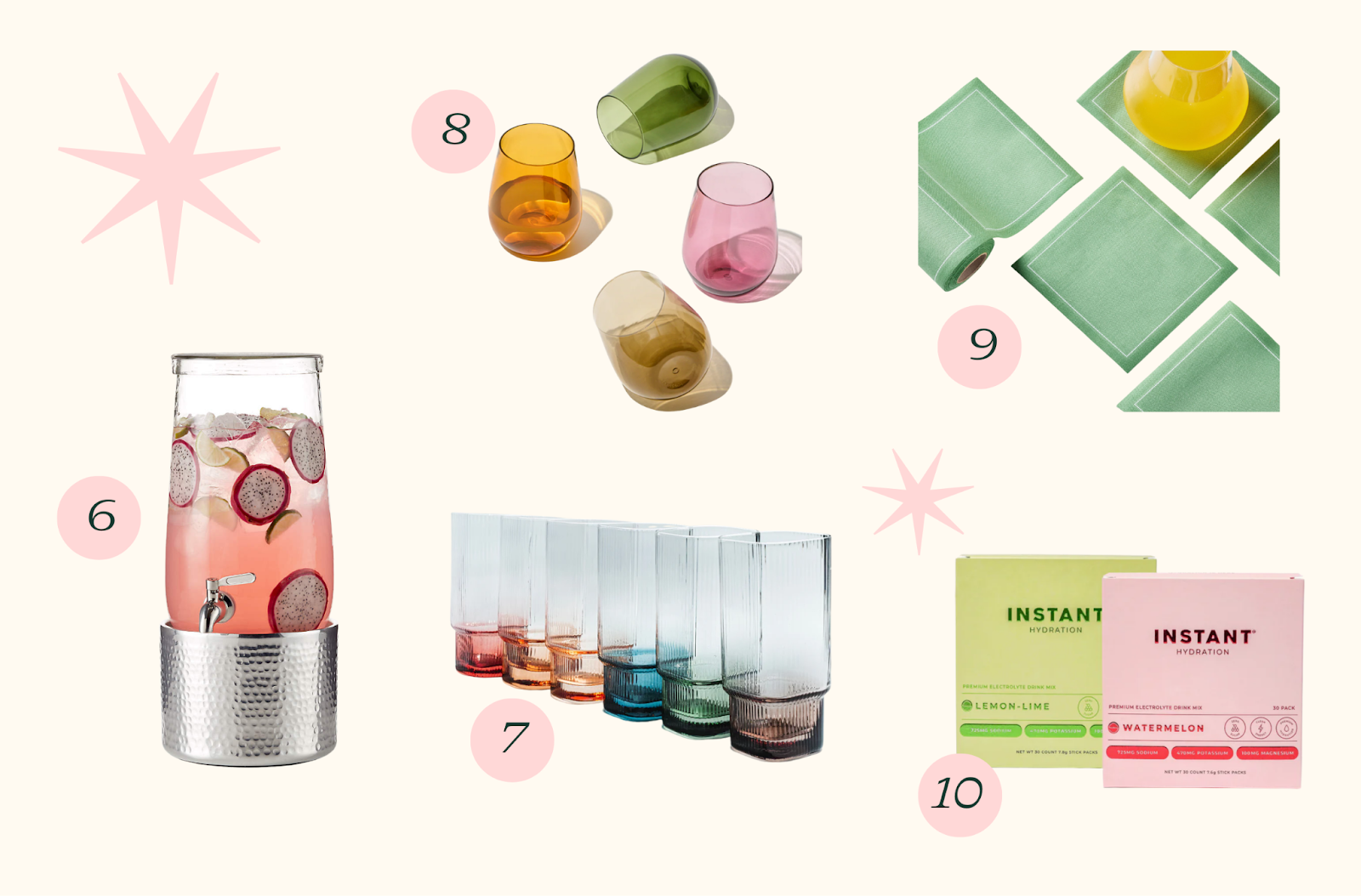 - For glassware, Saludi Highball Glasses feel modern and effortless. They’re perfect for serving sparkling water, mocktails, or fresh juice.