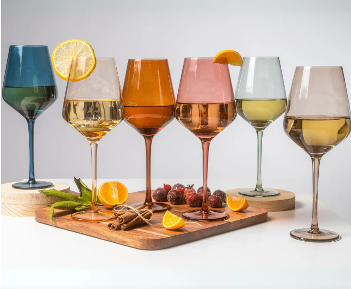 If you want to add personality without cluttering the table with extra decor, these hand-blown colored glasses are the answer. They serve as a great conversation starter and help guests keep track of which drink is theirs, thanks to their unique hues. The vibrant glass catches the light beautifully, especially for outdoor or afternoon gatherings.