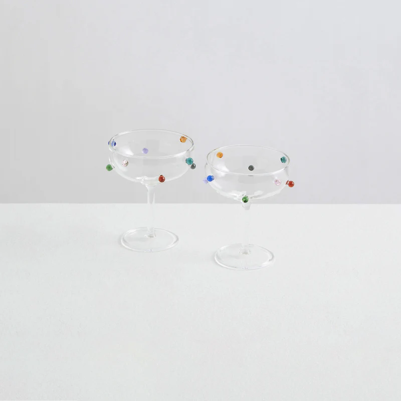 These coupes instantly elevate the table with a whimsical, design-forward touch. Best for cocktail-style dinners or special occasions, they create a moment with every pour. The delicate shape and color detail feel curated and unique. Use them as a focal point by keeping other glassware to a minimum.