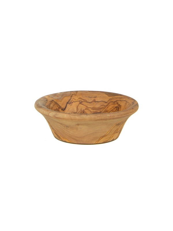 Material/look/feel: Made from solid olive wood with warm tones and unique grain patterns, giving each bowl a handcrafted, one-of-a-kind feel.