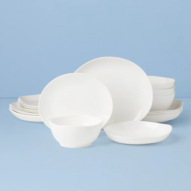 Start with a solid base that works for everything you’re serving. You don’t need multiple sets or anything overly styled—just something clean, neutral, and easy to mix into any kind of meal. A simple curved dinnerware set like this one from Lenox keeps things cohesive without drawing too much attention, which is exactly what you want for a casual setup. It’s the kind of piece you’ll use on repeat, not just for hosting.