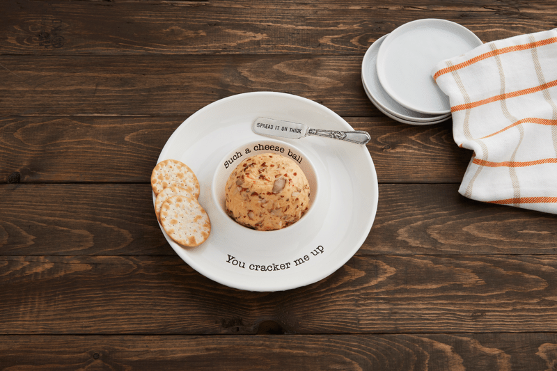 One of the easiest ways to make a dinner feel relaxed is to stop plating everything individually. Let the table do the work. A few ceramic serving pieces—like this ceramic serveware set—make it easy to place food in the center and let guests serve themselves. For smaller bites or starters, something like this cheese dish from Mud Pie works perfectly without feeling fussy.