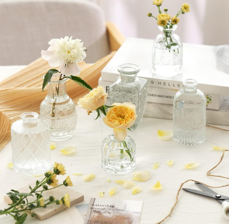 You don’t need a full tablescape, but an empty table can feel unfinished. The easiest fix is adding a few small elements that don’t get in the way. A set of mini glass vases like these lets you drop in a few stems or greenery and call it a day. It looks intentional without requiring effort.
