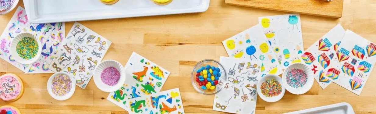 Something kids this age can easily decorate with are Stickies – Make Bake’s edible decorating stickers. Kids this age already love stickers and Stickies make it easy for them (and less messy) for you to get creative decorating! Founder Kristina created them because, “Even though I’m a professionally trained baker, I was never any good and piping characters that I knew my kids loved like unicorns and dinosaurs.”
