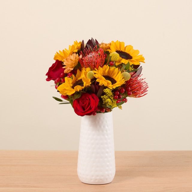 A harvest dream. This bouquet brings all the fall feels with a warm mix of red roses, sunflowers, and golden accents. It’s ideal for Friendsgiving tablescapes, seasonal brand activations, or gifting your favorite fall-lover. We love pairing it with earth-toned table linens and a spiced cocktail bar setup.