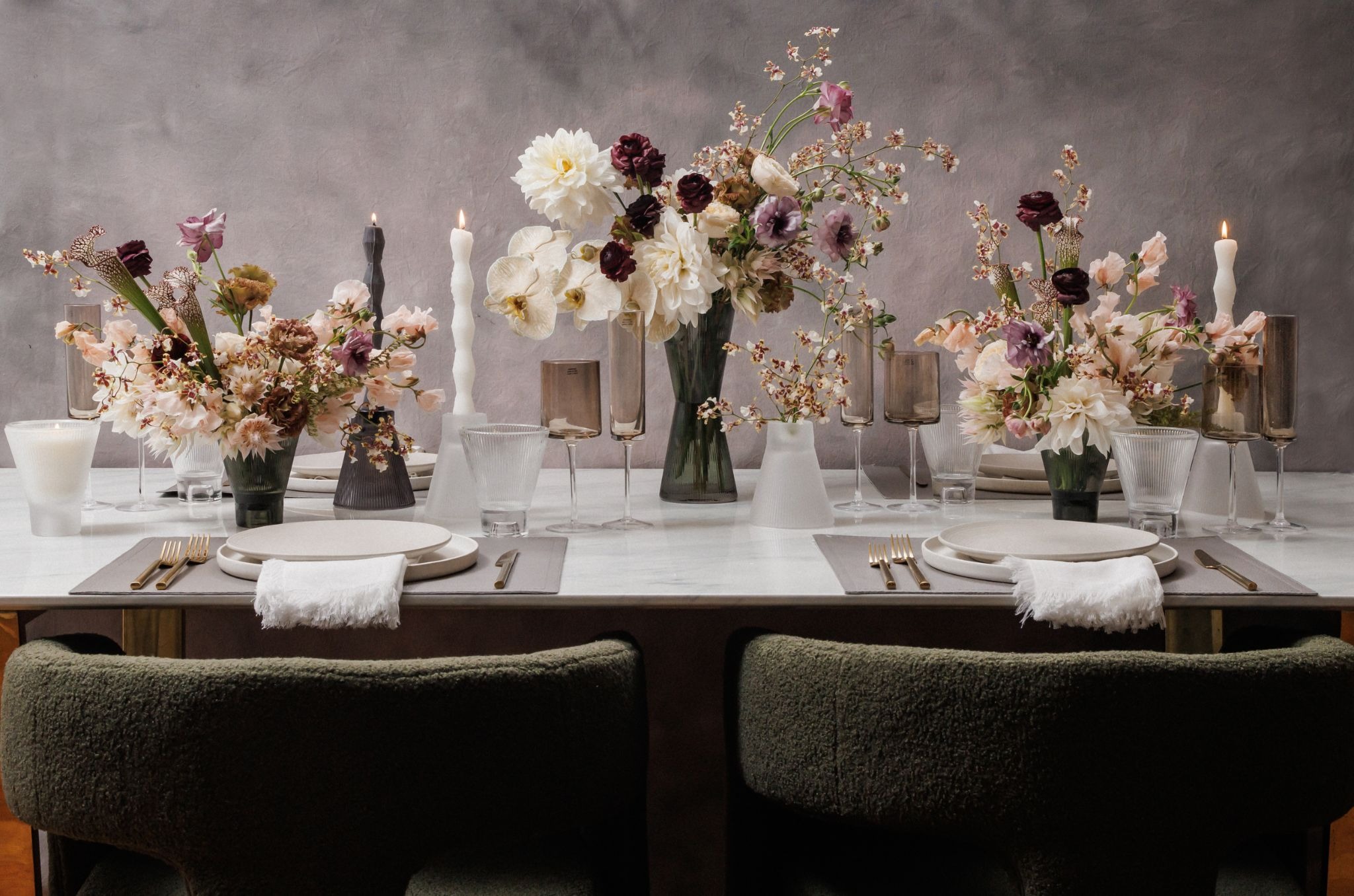 I’d start with a clean foundation. Fresh flowers from a local market. A neutral linen. Soft lighting.