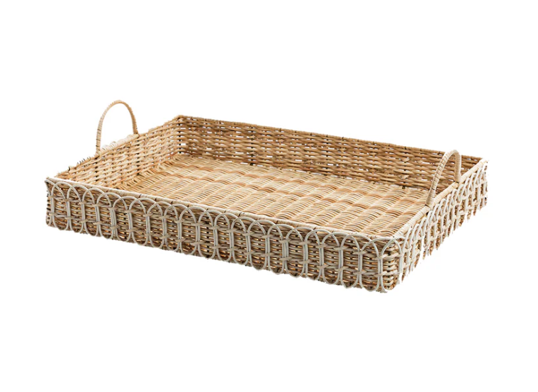 A tray acts as a "boundary," signaling to guests exactly where the drink station begins and ends.